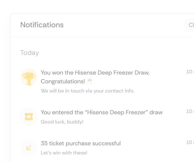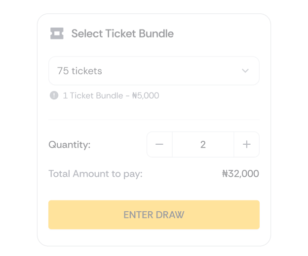 Browse live draws, review the prize and draw time, then pick how many tickets you want. Each ticket purchased is recorded and stored securely — there are no hidden chances.